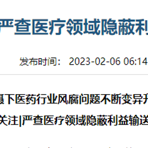 2023年7月,国家卫健委会同九部门发布《关于开展全国医药领域腐败问题集中整治工作的指导意见》,启动“为期一年的全国医药领域腐败问题集中整治”。