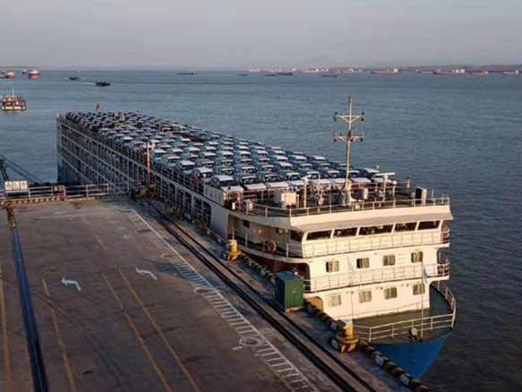 寒冬时节,比亚迪合肥基地总装车间呈现一派火热的繁忙景象,工人们正在给即将下线的新能源汽车做最后的检验检测,这里平均不到一分钟就下线一台新能源汽车;100多公里外,安庆港五里庙港区18号码头,一辆接着一辆汽车正通过港口通道驶入船舱,车辆将由上海中转运输,漂洋过海,出口至全球多地。