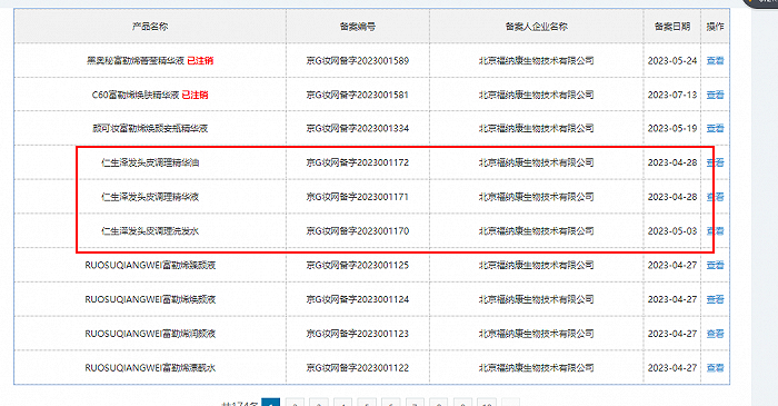 C2CC传媒X新妆在查阅国产普通化妆品备案信息时看到,北京福纳康备案了3款仁生泽发产品,分别为:仁生泽发头皮调理精华油、仁生泽发头皮调理精华液、仁生泽发头皮调理洗发水,功效宣称均为“保湿、修护”。