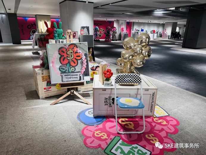 王府中环把展览藏进了停车场,原来停车还可以顺便看展!新改造后的停车场比以前的网红停车场更具艺术气息,整个空间布满了艺术品和零售展品。