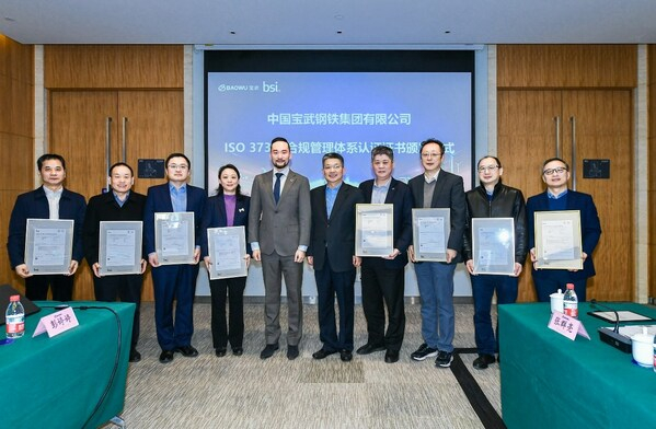 上海2024年1月19日 /美通社/ -- 近日,中国宝武集团总部、宝钢股份、马钢集团、太钢集团、宝武资源、宝信软件、宝钢包装、财务公司作为首批推进单位,获得了由BSI颁发的GB/T 35770-2022 / ISO 37301:2021合规管理体系国际国内标准双认证证书。