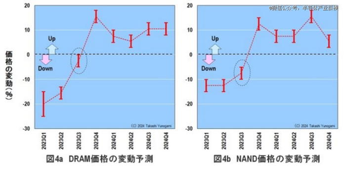 图4 DRAM和NAND价格波动预测 来源:Ken Kuo(TrendForce),数据来自《从全球内存市场分析预测明年的AI未来》