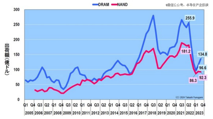 自2022年Q2以来,DRAM和NAND的出货量都大幅减少。这一下降在2023年*季度触底,但NAND持平,尽管DRAM开始复苏到同年第三季度。分析原因后,得出了以下结论。
