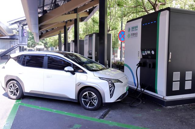 江苏常州,新能源电动汽车在光储充一体化能源站充电桩附近充电。图据IC photo