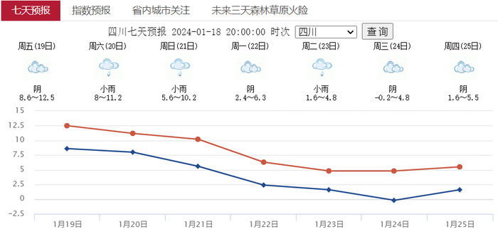 造成降温和雨雪天气的原因是什么?肖递祥介绍,目前在西伯利亚地区堆积的一股强冷空气是“主因”。对于四川而言,冷空气一方面将会翻越秦岭大巴山进入四川盆地;另一方面东移到长江中下游平原地区的冷空气,在偏东风气流的引导下,也会再次折向回流进入四川盆地。