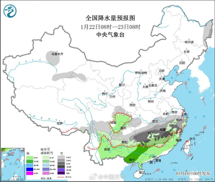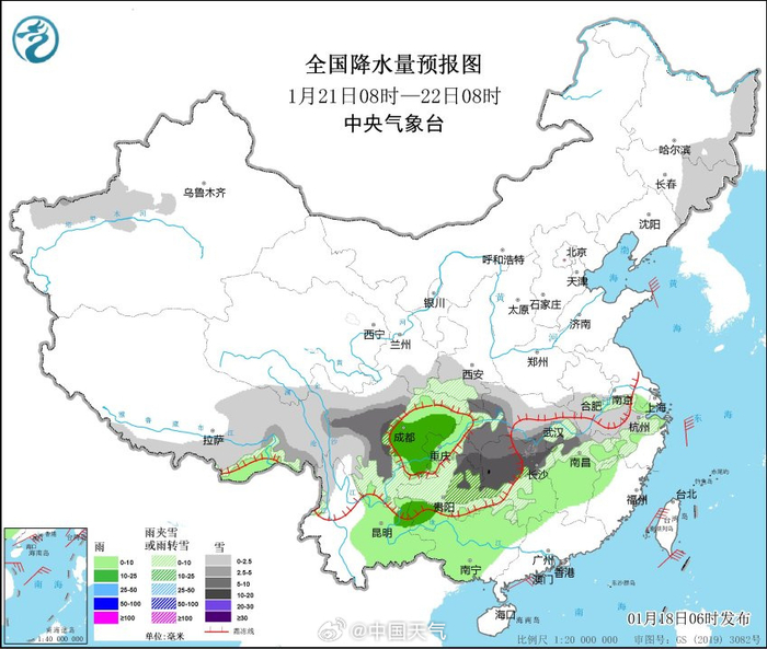 据@中国天气 解释说:21-22日,大范围降雪或将集中在南方出现。四川东部、重庆一带怎么被圈起来只有雨?由于盆地地形影响,中间低四周高,气温比周围要高,雪只能绕着走。