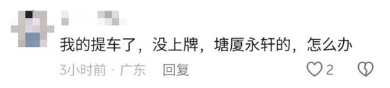 此外,由于4S店车辆采购资金多以新车合格证作为抵押向银行贷款,有网友在短视频平台上爆料称,1月17日晚间,有多辆拖车出现在东莞寮步汽车城门口,将广东永奥4S店的商品车拖走进行财产保全。也有消费者的留言印证了上述消息。该消费者表示:“我在南城埃安(店)交了首付,都弄好了,昨天要提车的,(店里的)车前晚被银行(全)拖完了。”