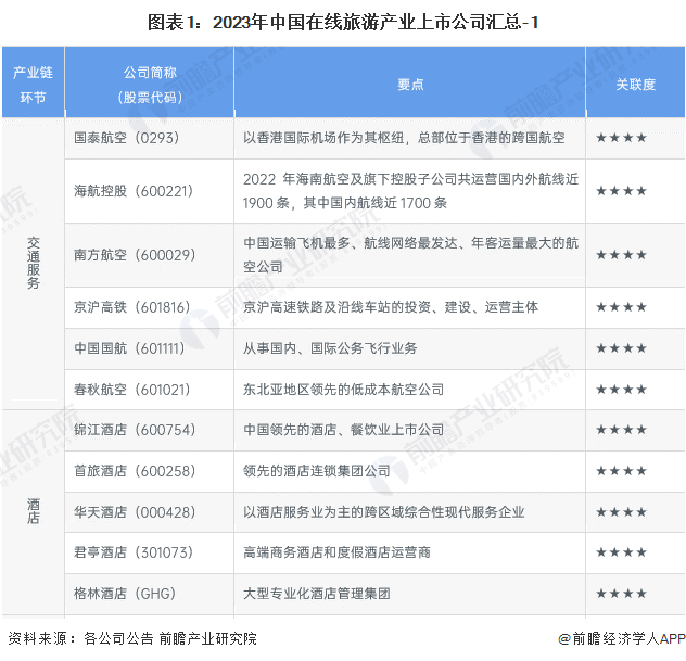 1、在线旅游产业上市公司汇总