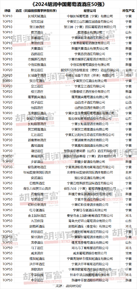 胡润中国葡萄酒酒庄50强:49家位于北方地区,宁夏产区酒庄最多