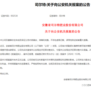 对于此事可能对上市公司造成的影响,司尔特表示,因本次报案案件尚未正式立案,公司目前无法判断案件对本期利润或期后利润等的影响。公司将全力配合公安机关的侦查工作,维护公司和全体股东利益。