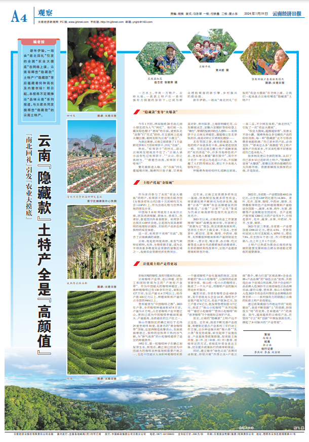 新年伊始,一场由“南北回礼”引发的全国“农业大摸底”在网络上演。云南有哪些“隐藏款”土特产?“隐藏款”背后蕴藏着何种商机及内需市场?即日起,本报将不定期推出“品味云南”系列报道,与大家共同发掘那些“隐藏款”的云南土特产。