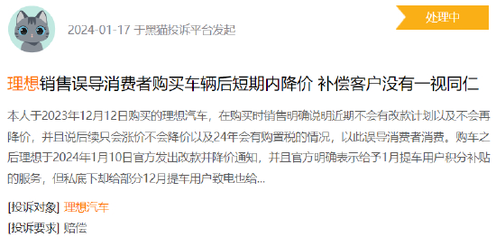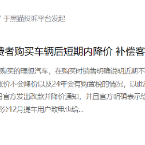 购车不到一个月理想汽车突然降价 车主集体投诉:这是销售欺诈!