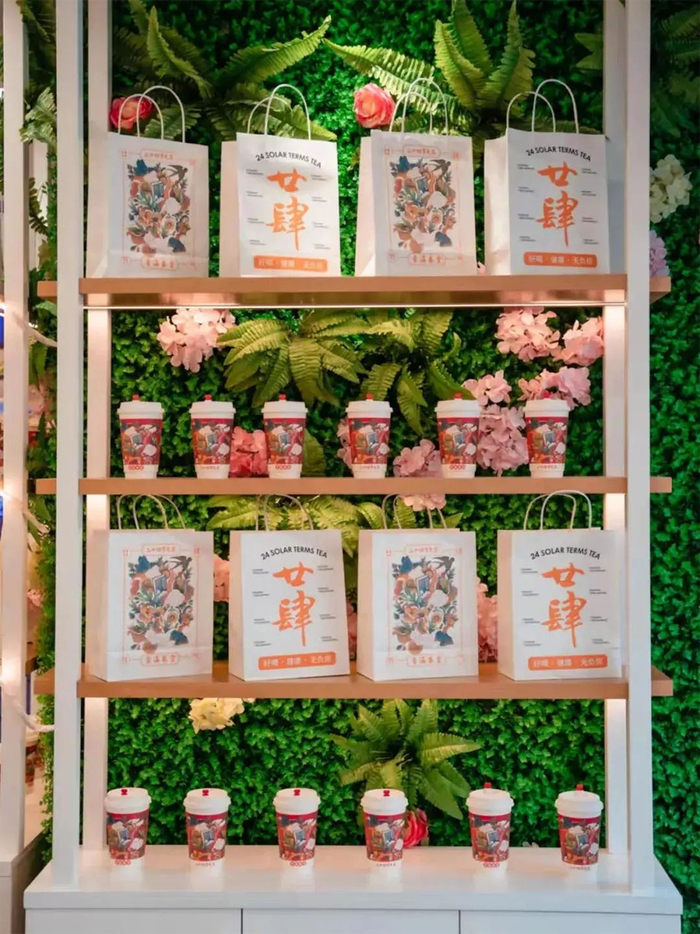 以“二十四节气,好茶好运”概念,遵从药食同源,古方入茶,主推融合中药与茶饮的国潮养生茶。好喝无负担、高颜值是其一大特色,包含“茶颜悦己”“消暑冰冰”“拒绝水肿”“滋润祛燥”“开胃解腻”“暖身暖心”六大系列。主张应时宜饮,会根据当前节气推荐饮品,如冬天主打“黑椰小丸子”(黑芝麻+椰汁+芋圆)。