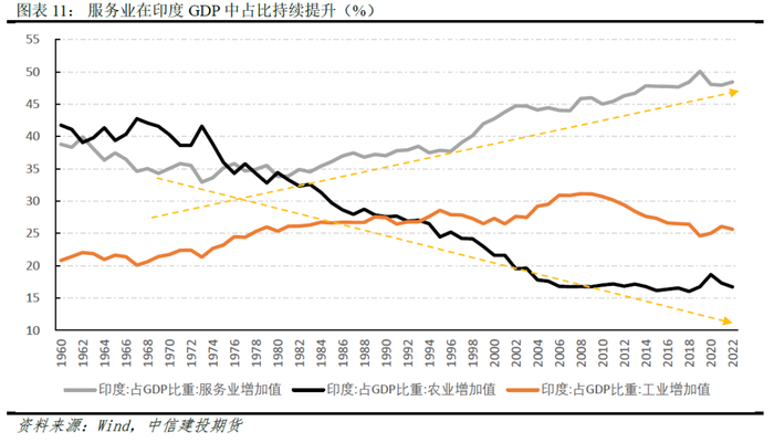 从经济结构来考量印度PVC市场的需求,可以看到服务业占GDP比重长期上行的趋势仍未改变,农业占比自2006年后便维持在略高于15%的水平,而工业在占GDP比重自2009年以来下行趋势明显。印度服务业的发达主要源自全球化的发展视角下外包业务的显著增长以及国内对于理工科教育的重视。而工业占比的持续下行,也意味着较大的进口需求以及长期的贸易逆差。经济结构的转变在短期内难以得到扭转,全球高利率下投资较少以及FDI流量的下降也导致本国的工业化进程缓慢。因此中长期内对于印度PVC市场而言,依赖进口的局面仍难以得到改变,也提供了为我国庞大的PVC产能寻找海外渠道的可能性。