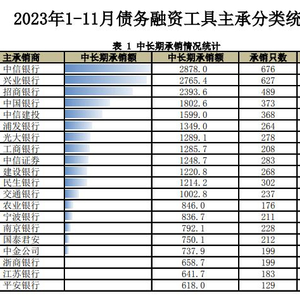 据交易商协会发布的最新数据,2023年1-11月债务融资业务仍以内资银行为主,并且多家股份制银行在承销额和服务企业发行家数上占据主要份额。
