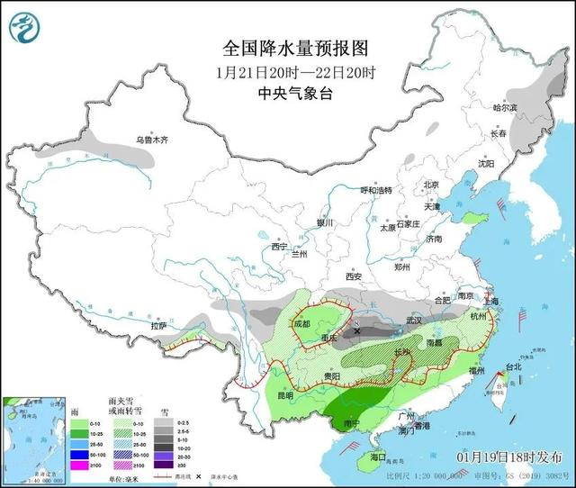 预计21日至22日,川西高原、陕西南部、重庆东部、湖北南部、安徽南部、贵州、湖南、江西、浙江中西部、福建西北部、广西东北部等地的部分地区有大到暴雪,局地有大暴雪。贵州、湖南西部和南部、广西北部、广东北部等地山区局地有冻雨。降雪核心时段是在周日夜间到下周一。