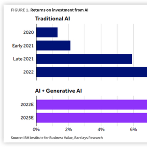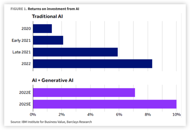 传统人工智能投资创造的回报相当有限,根据IBM商业价值研究院的估计,平均投资回报率从2020年初的约1%攀升到2021年底的约6%。