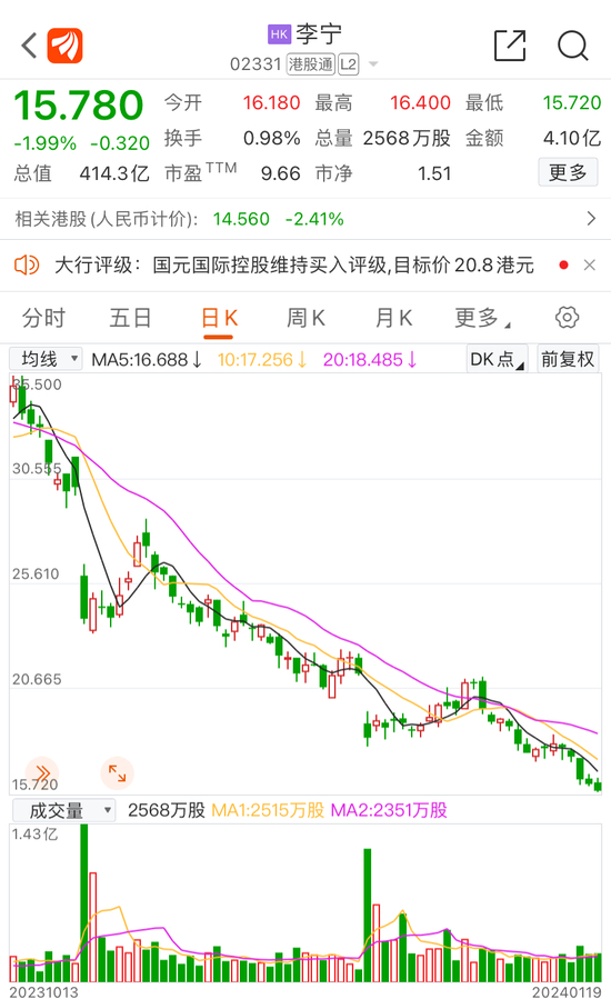 消息一出就遇到年底股价新低,显然,投资者们并不满意李宁此举。