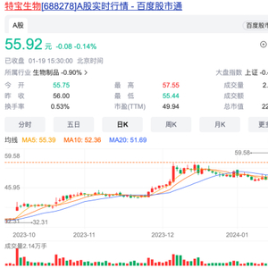 短短一个月,特宝生物股价已经从45元左右,逐渐向60元区间发起冲击。