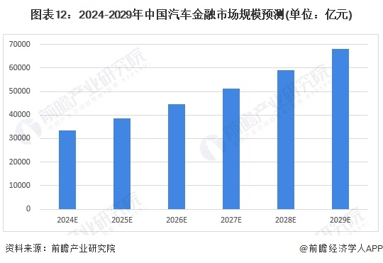 在国家产业政策的支持、互联网金融的发展以及下游消费需求释放的推动下,中国汽车金融市场规模预计在2024至2029年间持续上升,2029年市场规模将突破6.8万亿元,2024-2029年的复合年增长率达到15.3%。