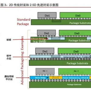 先进封装的巨大市场吸引了前道晶圆厂商向下游延伸,积极布局先进封装市场。SiP 现有商业模式下产业链分工较为明显,但存在潜在 OSAT SiP 和晶圆厂 SiP 模式。这两种 模式形成有两方面原因:1)集成不同的功能模块是 SiP 技术的核心特征,一定程度上构 成了对传统模组组装技术的替代,因此现有的 OSAT 厂商通过 SiP 能够向后延伸发展基板 和 EMS 业务;2)SiP 的实现需以先进封装技术为基础,部分先进封装技术本身对于前道 工艺也有一定要求,Yole 认为晶圆厂也有望向后延伸发展 OSAT 和基材业务的可能。先进 封装前后道工艺相互渗透融合,具有较高技术壁垒和技术积累的厂商会向上下游工序延伸。