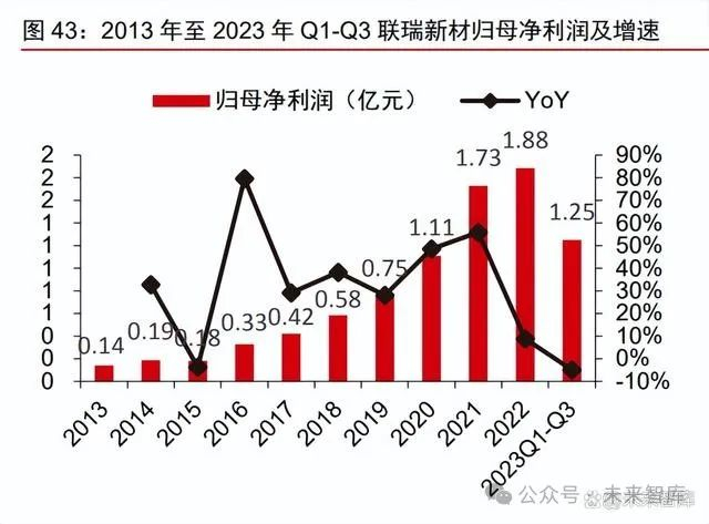 营收持续增长,2023Q1-Q3 盈利小幅下降。公司营收从 2018 年的 2.78 亿增长至 2022 年的 6.62 亿,CAGR 为 24.21%,呈现持续增长态势。2023 年 Q1-Q3,公司营业收入同 比增长 4.72%。利润端,2018-2022 年公司归母净利润 CAGR 为 34.01%。2023 年 Q1-Q3, 半导体行业处于下行周期,全球终端市场需求疲软,公司归母净利润同比小幅下降。先进 封装市场的增长将为球形硅微粉带来需求增量,我们预计未来随着先进封装市场规模的迅 速扩张,有望进一步带动公司业绩增长。 产品应用领域丰富,覆铜板+环氧塑封料助力业绩增长。公司主要产品为结晶硅微粉、 熔融硅微粉和球形硅微粉等,广泛应用于覆铜板、环氧塑封料、电工绝缘材料、胶粘剂、 陶瓷等领域。公司主营业务收入主要来源于覆铜板和环氧塑封料两个领域,2019H1 覆铜板和环氧塑封料两大领域贡献了 73.64%的销售收入以及 73.60%的毛利。未来随着先进封 装带动下环氧塑封料市场规模的迅速扩张,有望为公司业绩注入新的增长动力。
