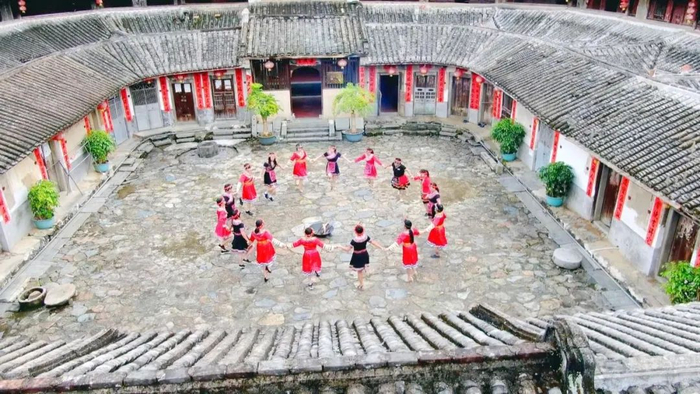饶洋镇党委委员 詹汉玉:我镇按照国家和省市县对特色村寨的要求,做好蓝屋村特色村寨建设的总体设计,编制出整体规划,为蓝屋村打造旅游产业注入丰富的特色文化支撑。围绕“山水风光,文化旅游”,以泰华楼为中心,打造特色村寨展示窗口,多手段、多方面积极向外宣传推广蓝屋畲族民族特色,推动文旅资源创造性转化、产业化发展。