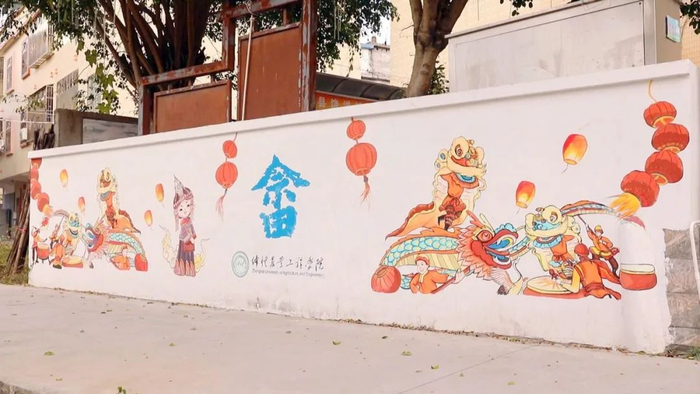近期,饶洋镇乡村振兴人才驿站还邀请多所高校美术领域师生团队来到蓝屋村开展美绘活动,把文化和艺术绘制在墙体上,使昔日单调的墙面瞬间“活”了起来,成为美丽乡村建设中一道靓丽的风景线。