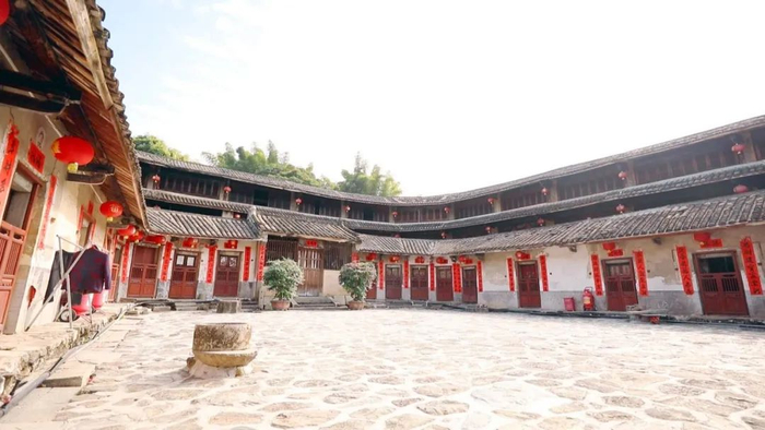 游客:从小视频上面知道的,我们是和朋友家人一起过来的,开了两个多小时,从汕头市区到这里,专门来看这个围屋的。