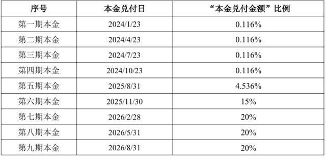 2024年10月23日,兑付第四期本金兑付金额自2023年8月31日(含) 至2024年10月23日(不含)产生的相关利息;