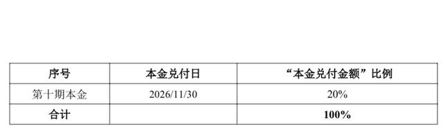 2026年11月30日,兑付第十期本金兑付金额自2023年8月31日(含) 至2026年11月30日(不含)产生的相关利息。