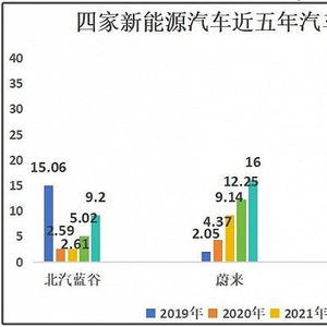 数据显示,2019年,当时北汽蓝谷汽车销量为15.06万量,那个时候的蔚小理销量最高的蔚来汽车(HK:09866)才2.05万辆。2020年,北汽蓝谷直接跳崖式下跌到了2.95万辆,被蔚来和理想汽车(HK:02015)超越,仅比小鹏汽车(HK:09868)2.7万辆多0.25万辆。