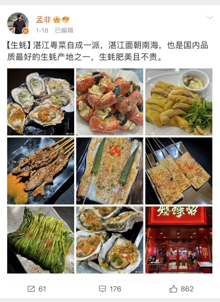 除了孟非老师微博展示的生蚝、螃蟹