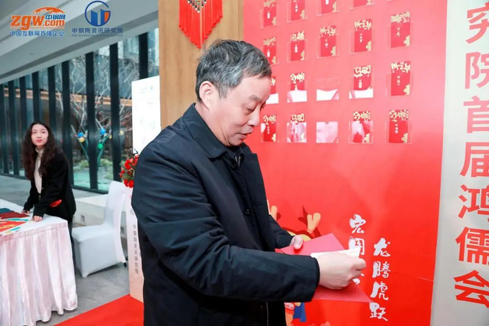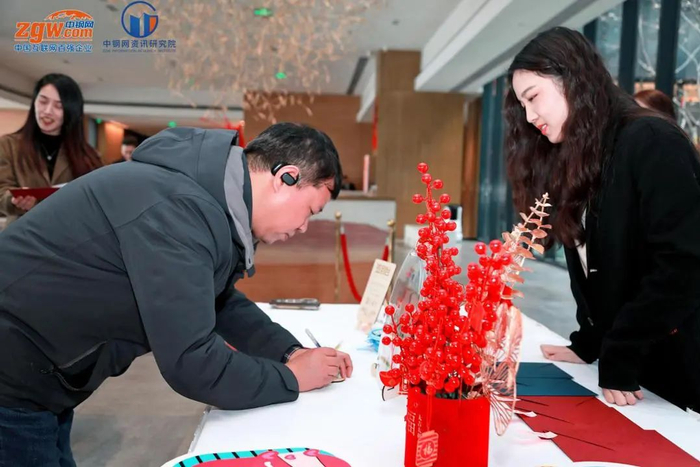 从酒店入门绵延的红毯,将嘉宾一路引向会场,外面寒风凛冽,会场却温暖热闹、灯光璀璨,踏上红毯的嘉宾,目之所及是一路荣光的回顾。互动签到处,嘉宾们抽取了新年的好运签,并一一留下了自己的签名,投入到“首届鸿儒会”的纪念牌中以做留念,鸿儒会的开端在此刻划上时间刻度。