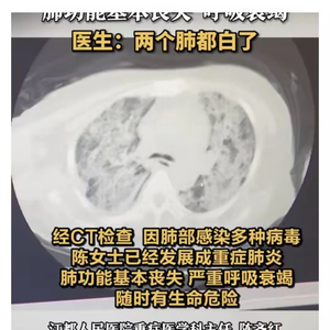 近期,“女子硬抗流感10天两个肺都变白了”的热搜引发关注!据悉是来自江苏51岁的陈女士,近日感染流感,可她未前往医院就诊,而是在家硬扛10余天。感觉身体明显不适后才前往社区医院就诊,在输液时突发晕厥。经CT检查因肺部感染多种病毒,陈女士已经发展成重症肺炎,肺功能基本丧失,严重呼吸衰竭,随时有生命危险!