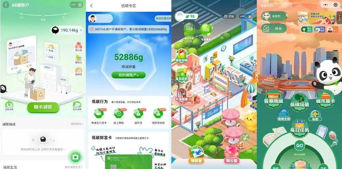 这四张分别是淘宝“88碳账户”、中信银行碳账户、菜鸟“绿色家园”、成都“碳惠天府”平台。