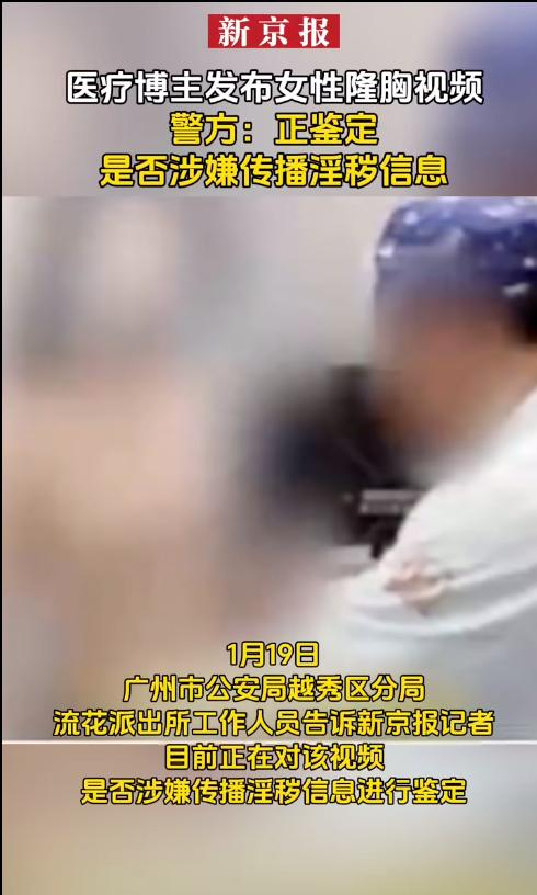 据新京报报道,1月19日,广州市公安局越秀区分局流花派出所工作人员告诉记者,目前正在对该视频是否涉嫌传播淫秽信息进行鉴定。