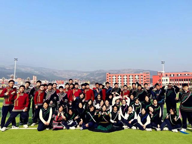 “老师,我们先暂停一下。”演出至一半,全班同学脱掉校服,换上了彝族服饰,用更有仪式感的形式为谢梦淋献上了一条“英雄带”。