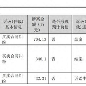 我们翻阅了高盟新材近一年的公告,没有重大的诉讼案件。我们在高盟新材2023年半年度报告中发现,公司只有3个买卖合同纠纷案件,且有两个已经结案,只有一个正在诉讼中且案件标的仅32.31万元。