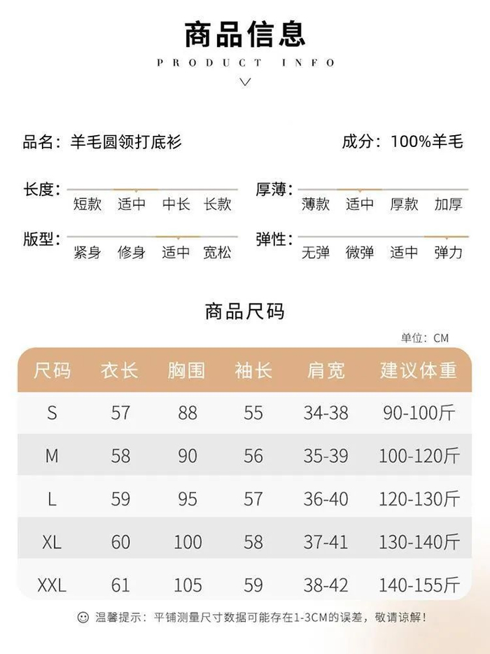 这款打底衫不挑体型,码数从S到XXXL,根据平时自己的打底衫码数来选择即可。