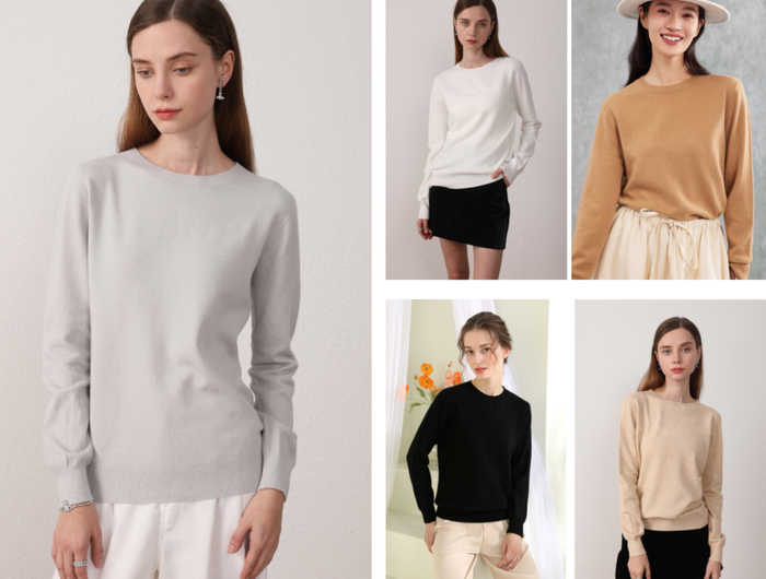 3种款式:女款圆领、女款半高领、男士圆领。