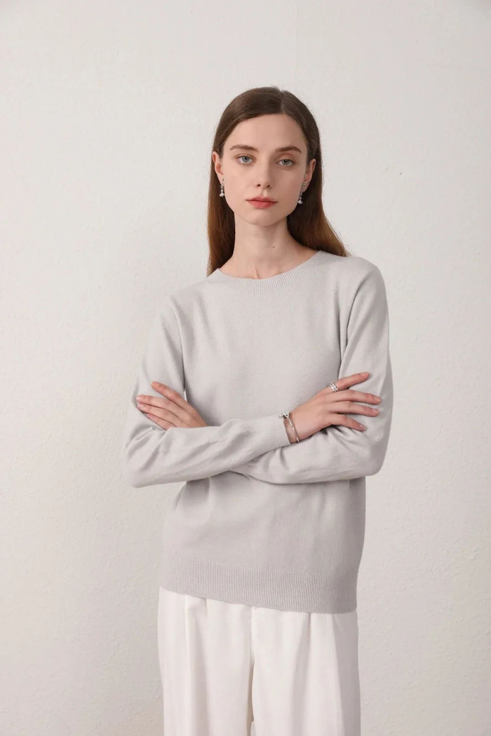 买过很多花里胡哨的毛衣,只有圆领纯色的羊毛衫最能体现质感,衣柜里总要有几件不同颜色的圆领羊毛衫,来百搭整个冬天的造型。