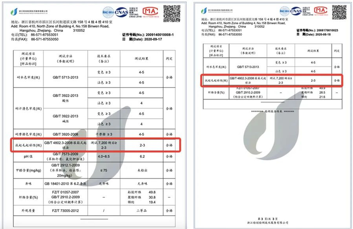 巴素兰工艺处理后的羊毛衫除了柔软高弹的特性,还非常耐磨不易起球,这3款羊毛衫都经过了第三方机构的专项抗起球测试,抗起球2-3级。