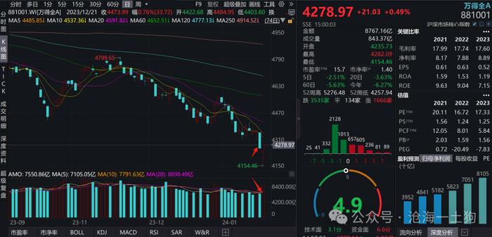 事后来看,2023年12月28日,全a指数放量上涨2.0%+,很可能是某些资金的自救行为,因为在此之前系统处于一个缩量的环境中。只不过这一次自救没能扭转大环境,元旦之后,成交量重新回归萎靡。