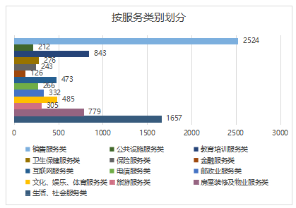 根据投诉服务分析,销售服务2524件,占29.62%;生活及社会服务类1657件,占19.45%;教育培训服务类843件,占9.89%;房屋装修及物业服务779件,占9.14%;文化、娱乐、体育服务485件,占5.69%;互联网服务473件,占5.55%;邮政业服务332件,占3.9%;旅游服务305件,占3.58%;卫生保健服务276件,占3.24%;电信服务266件,占3.12%;保险服务243件,占2.85%;公共设施服务212件,占2.49件%;金融服务126件,占1.48%;