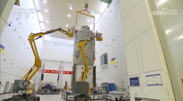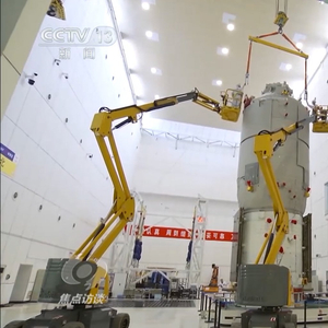 航天科技集团五院研制人员杜瑞兆:“货运飞船在地面总装阶段提供了两种进舱通道,对于小型货物,主要通过前舱门进舱;对于大型货物,主要通过舱壁上的侧操作口吊装进舱。在进舱的过程中我们给它做了一个进舱保护工装,避免设备与舱体之间可能产生的磕碰。设备在舱内安装到位之后,要专门重新再做一个舱内的保护工装,来确保到发射场封舱的产品安全。通过一些透明材料进行外观观察,便于直接观察内部产品状态。”