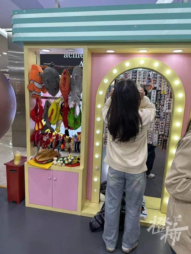 除了商场内,街边也开出了小型自拍馆。长生路附近新开了一家大头贴馆,面积20方左右,一楼放置了两台大头贴机,二楼置了简单的景用来给客人拍摄拍立得照片。店员表示,比较受欢迎的还是一楼的大头贴,已经成为社交平台的热门打卡点,“临近年关,糖葫芦、对联、红灯笼等道具很受欢迎。”
