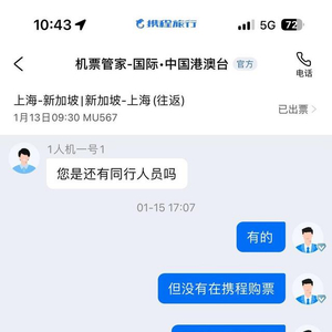 携程的客服人员在当天17时左右收到章女士信息,主动询问了是否有同行人员并请她提供了票号。约半小时后回复章女士:改签机票没有差价,且同行人员的机票也没有差价。该客服人员告知章女士,携程联系了航司并将章女士的机票已改期,1月16日10:10起飞,1月16日15:15到达,航班号MU546。