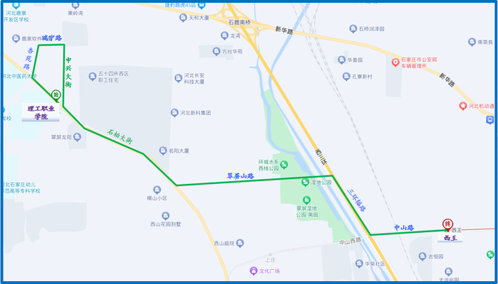 1. 起止点:理工职业学院—西王。