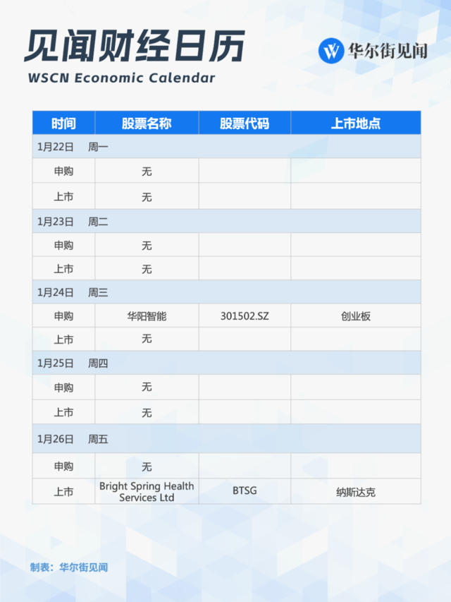 当周(1月22日-1月26日),A股有1只新股网上发行,美股有1只新股发行。